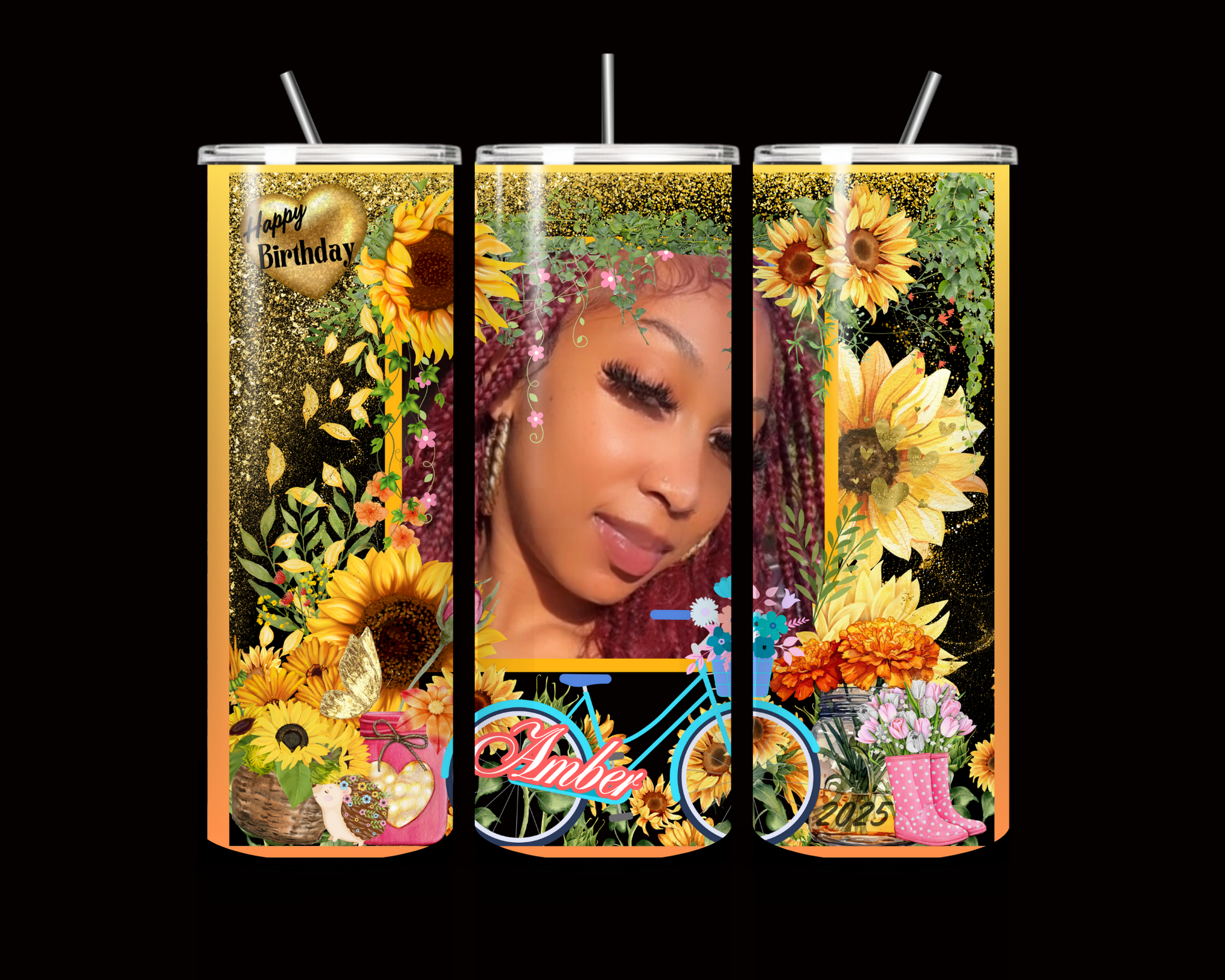 Introducing the SUNFLOWER 20oz TUMBLER, the perfect customizable photo tumbler for keeping your drinks hot or cold. With its unique design and custom sunflower print, this tumbler is not only stylish but also practical. Keep your drinks at the perfect temperature while showing off your personal style.